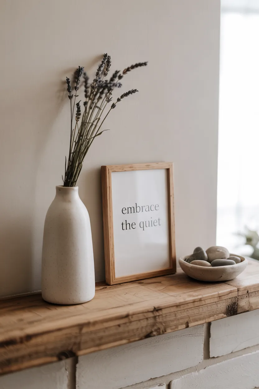 If you want a clean, modern look, focus on just a few meaningful items. Choose three pieces: one tall (like a vase), one medium (like a framed quote), and one low (like a bowl). Stick to soft, summery colors and natural textures. The space between items gives your eyes room to rest.